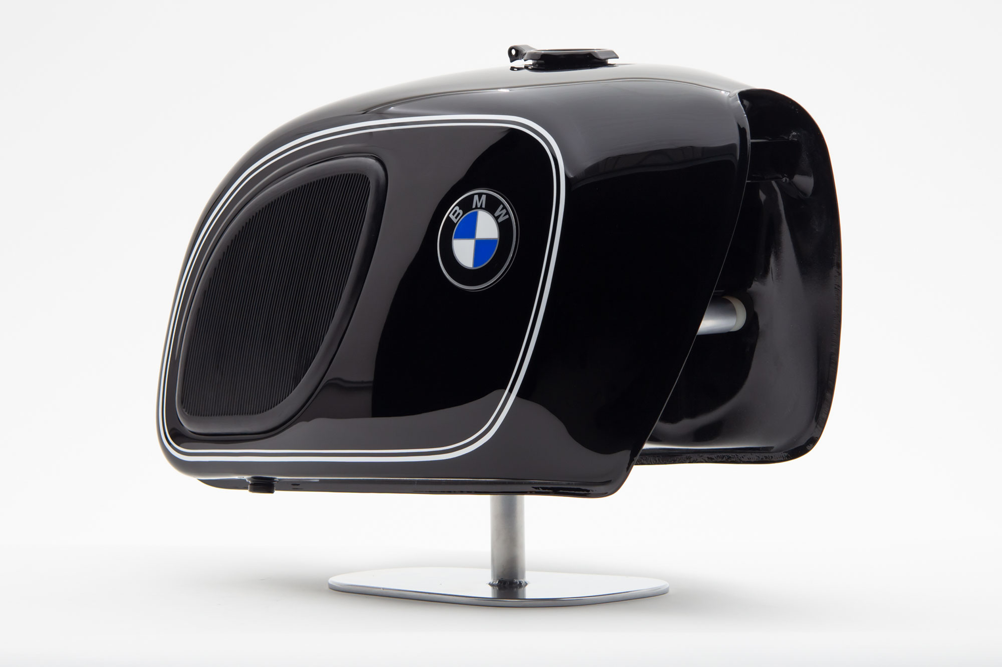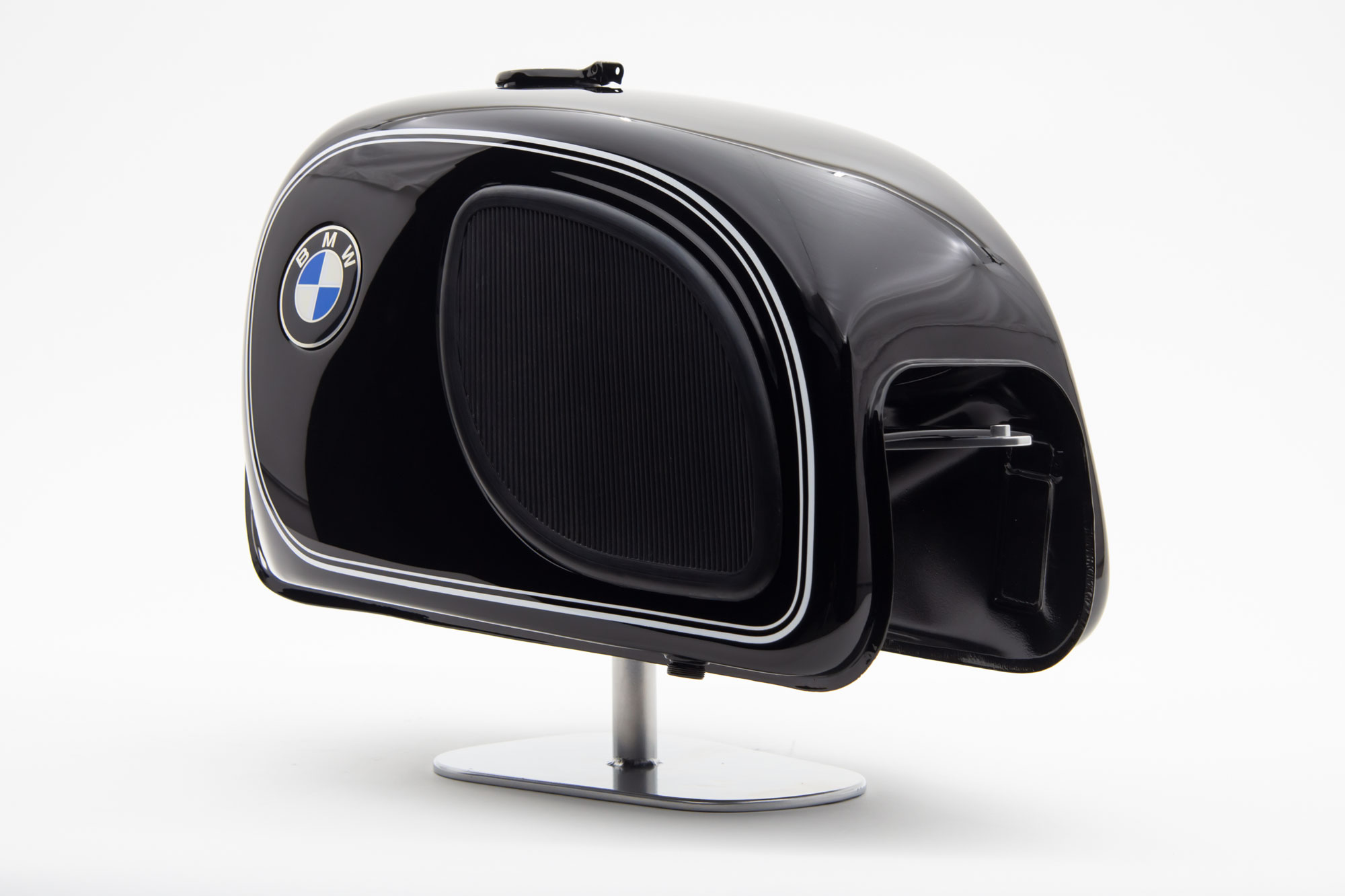 We finished the side covers with reproduction BMW decals and installed new BMW tank badges to complete the restoration. The result is a clean, factory-correct R75/6 finish that respects the original design while addressing the structural issues underneath.